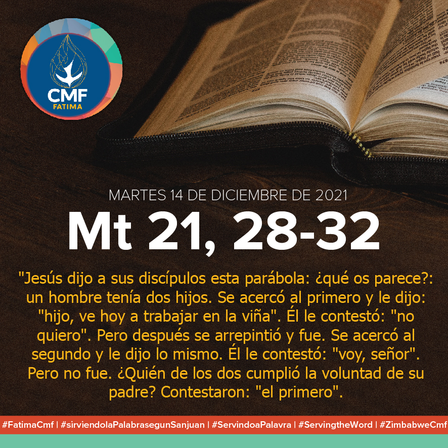 MARTES 14 DE DICIEMBRE DE 2021 Mateo 21, 28-32: "Jesús dijo a sus discípulos esta parábola: ¿qué os parece?: un