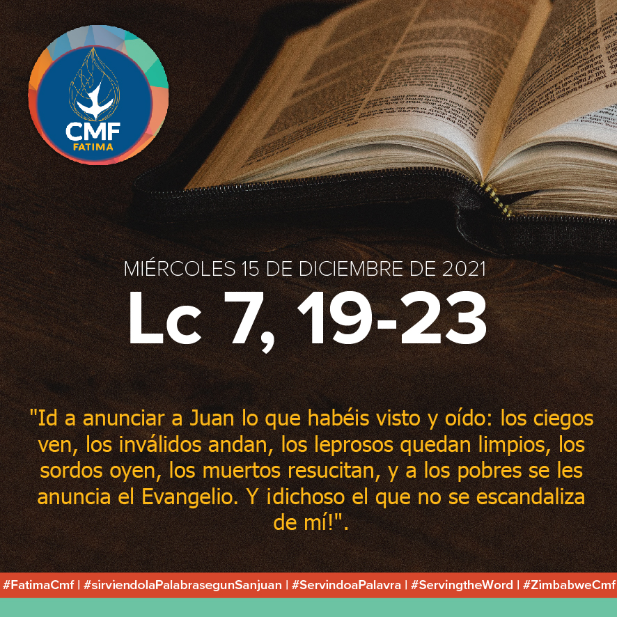 MIÉRCOLES 15 DE DICIEMBRE DE 2021 Lucas 7, 19-23: "Id a anunciar a Juan lo que habéis visto y oído: