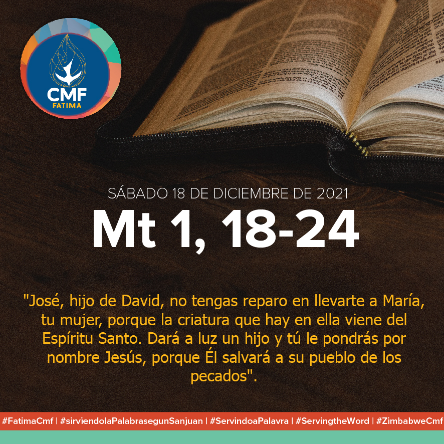 SÁBADO 18 DE DICIEMBRE DE 2021 Mateo 1, 18-24: "José, hijo de David, no tengas reparo en llevarte a María,