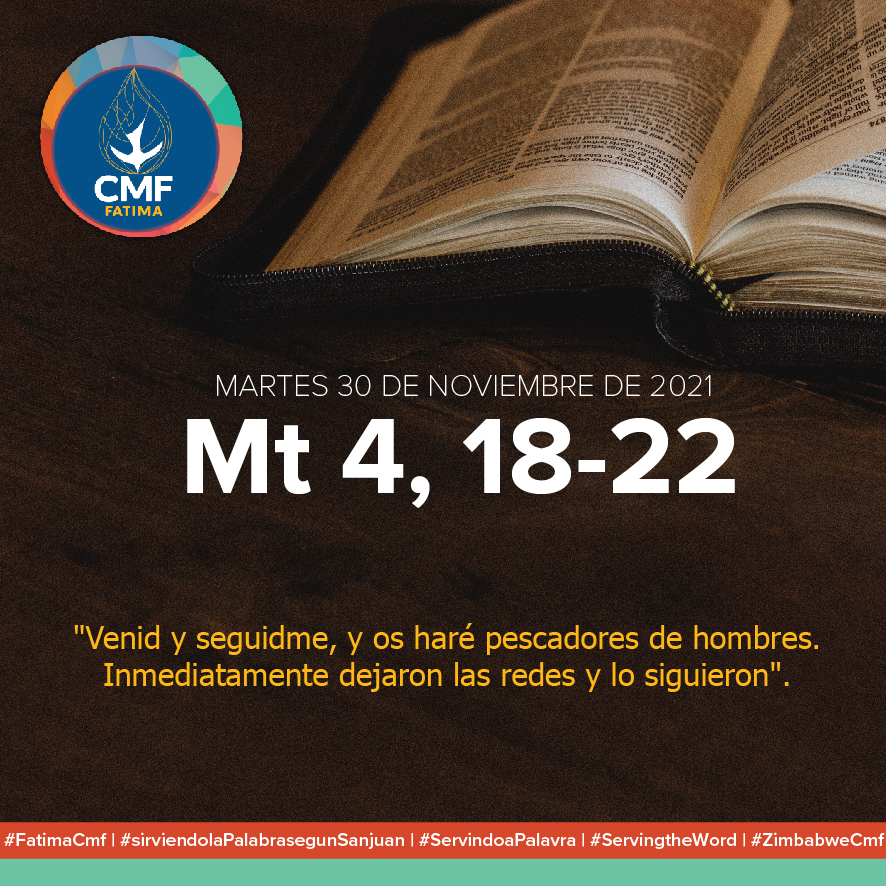 MARTES 30 DE NOVIEMBRE DE 2021 Mateo 4, 18-22: "Venid y seguidme, y os haré pescadores de hombres. Inmediatamente dejaron