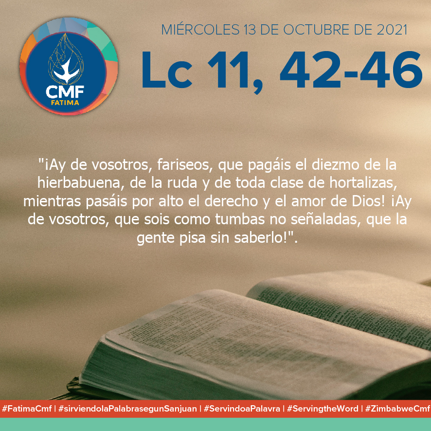 MIÉRCOLES 13 DE OCTUBRE DE 2021 Lucas 11, 42-46: "¡Ay de vosotros, fariseos, que pagáis el diezmo de la hierbabuena,