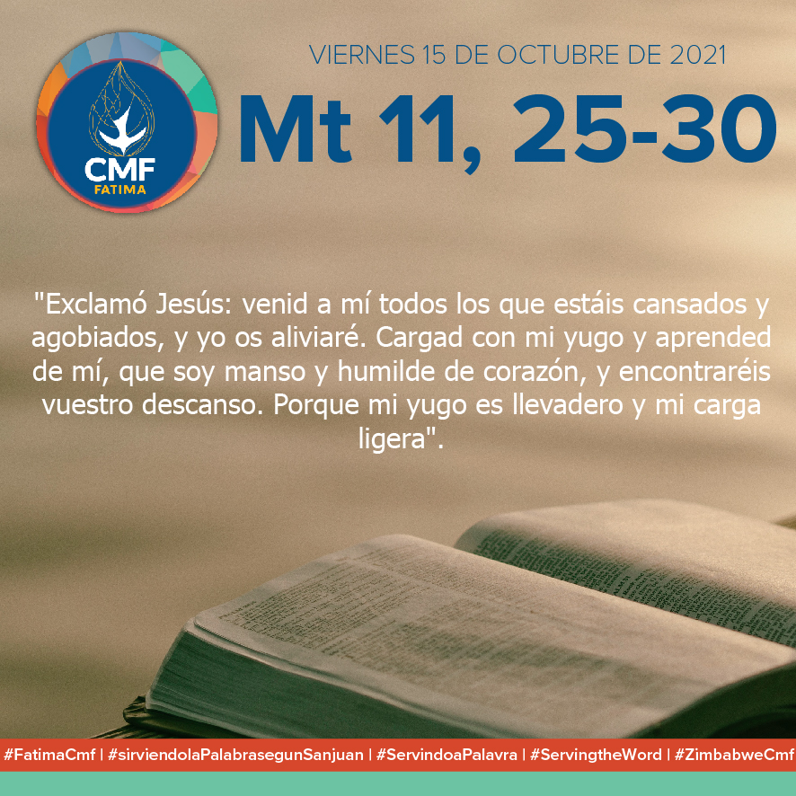 VIERNES 15 DE OCTUBRE DE 2021 Mateo 11, 25-30: "Exclamó Jesús: venid a mí todos los que estáis cansados y
