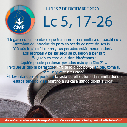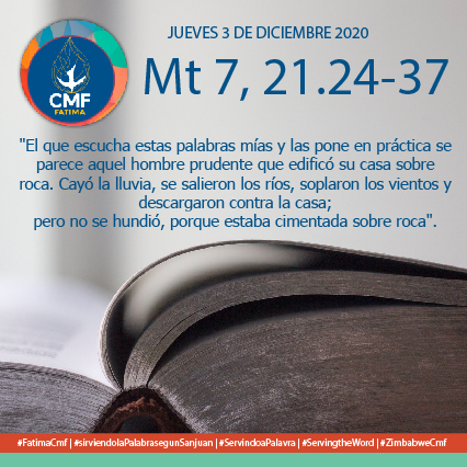 Sirviendo la Palabra: 7 de Diciembre LUNES 7 DE DICIEMBRE 2020 Lucas 5, 17-26: "Llegaron unos hombres que traían en una camilla a un paralítico y 8 – Promesa Comentario del Domingo: 6 de Diciembre Domingo, 6 de diciembre 2020. (2º T A B). Marcos 1, 1-8: Este domingo aparece en la Palabra de 7 – Cargar con el otro Sirviendo la Palabra: 5 de Diciembre SÁBADO 5 DE DICIEMBRE 2020 Mateo 9, 35-10,1.6-8: "Jesús recorría todas las ciudades y aldeas enseñando en sus sinagogas, anunciando 6 – Solidaridad Sirviendo la Palabra: 4 de Diciembre VIERNES 4 DE DICIEMBRE 2020 Mateo 9, 27-31: "Dos ciegos seguían a Jesús, gritando: ten compasión de nosotros, hijo de 5 – Soñemos juntos Sirviendo la Palabra: 3 de Diciembre JUEVES 3 DE DICIEMBRE 2020 Mateo 7, 21.24-27: "El que escucha estas palabras mías y las pone en práctica se 4 – Comunión Universal « Previous 1 … 134 135 136 137 138 … 208 Next » Comparte con otros 2019-10-20